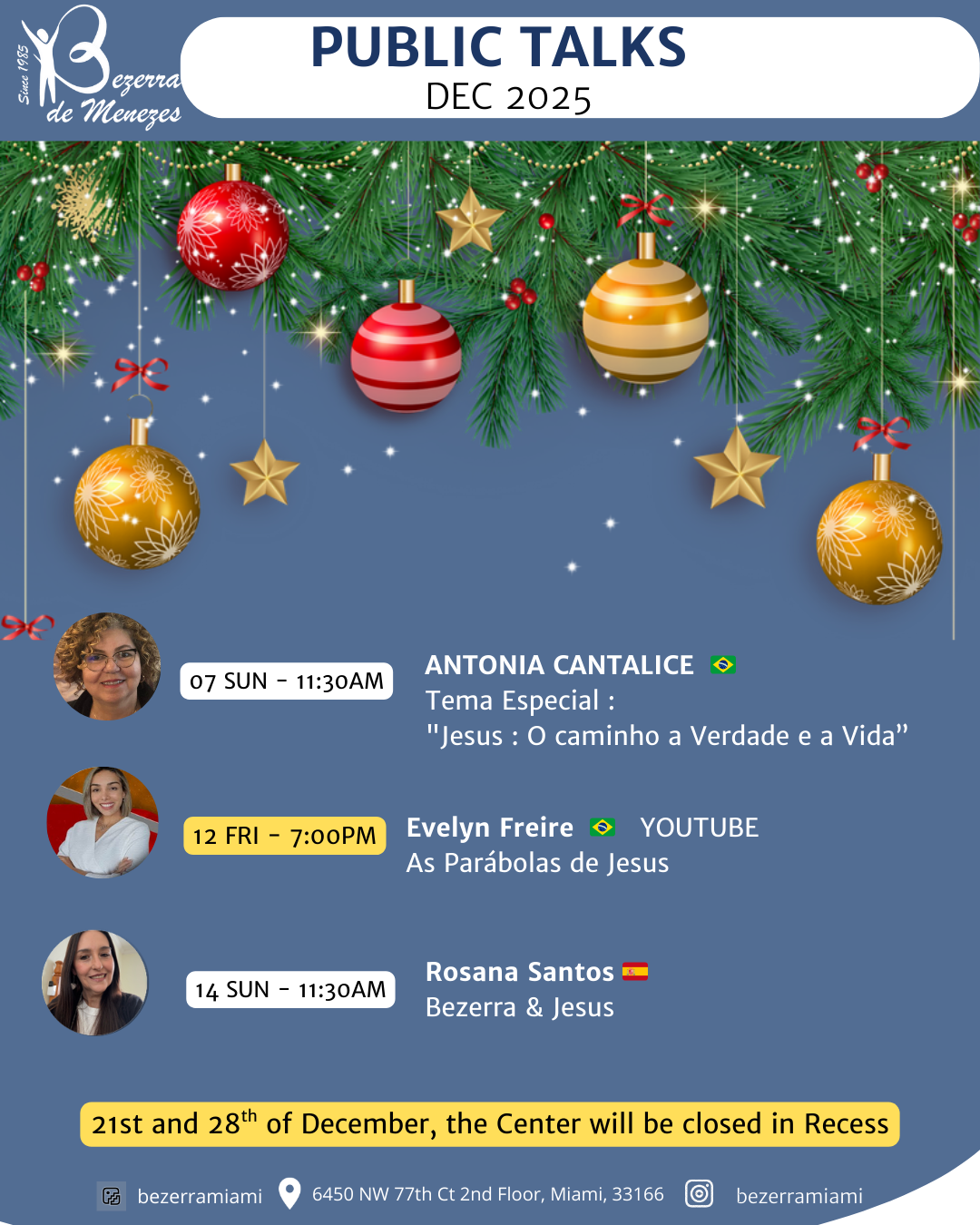 🇺🇸 We offer spiritist courses, public lectures, seminars, study groups, a library with books in English, Spanish, and Portuguese, and social assistance programs.
